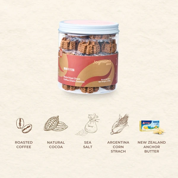 - Made with New Zealand Anchor butter and premium wheat flour, this cookie is baked to a soft and crispy perfection. Infused with aromatic coffee and rich chocolate, each bite delivers a satisfying Coffee-Cham blend that’s both bold and comforting. A light sprinkle of sea salt enhances the flavors even further, balancing the sweetness and elevating the overall aroma. The rich, creamy butter base melts in your mouth, creating an irresistible texture that keeps you reaching for more. A must-try for coffee lovers and dessert fans alike!
