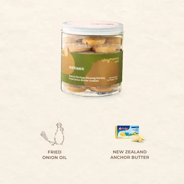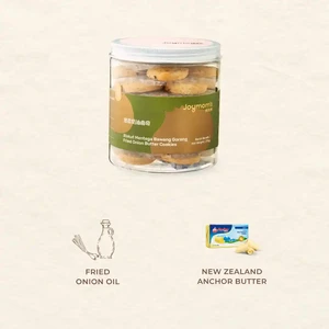 - This innovative cookie combines fried onions with New Zealand Anchor butter, creating a unique flavor. The soft, creamy butter taste first hits your palate, followed by a refreshing onion aroma that gradually fills your mouth. The balance of savory and creamy flavors is perfect, and the subtle onion fragrance gives a fresh, natural feel, making it suitable for all ages to enjoy.