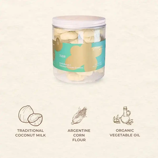 - Kuih Bangkit, originally a traditional Malay cookie, has been transformed by the Chinese into a must-have treat for Chinese New Year. After improvement, it not only has a richer, more aromatic coconut flavor but also a better texture. The initial dryness quickly melts in your mouth, turning into a burst of sweet and creamy coconut milk flavor!